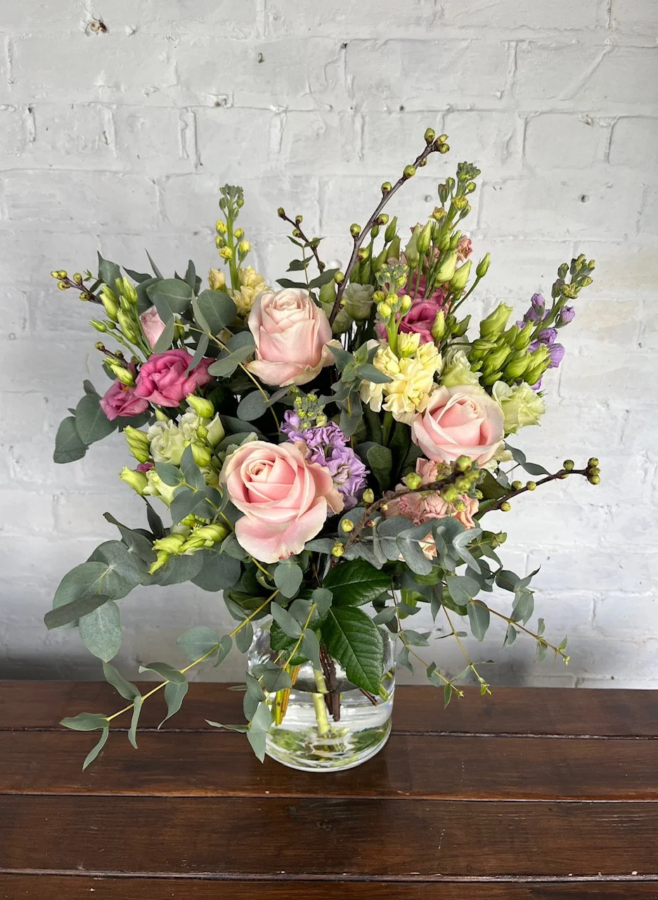 Featuring sugary pastel colours with pale pink roses and sweetly scented with Italian Matthiola and eucalyptus. This bouquet is the most delicious but calorie free treat!