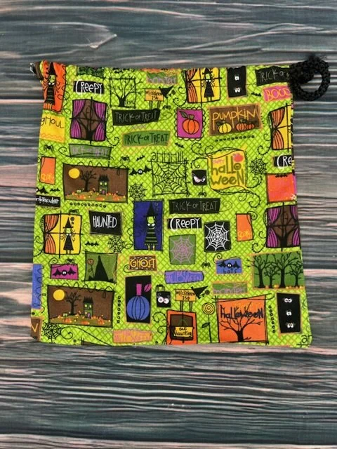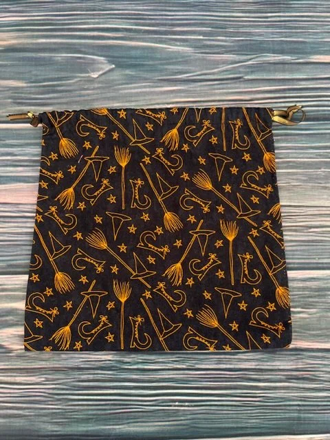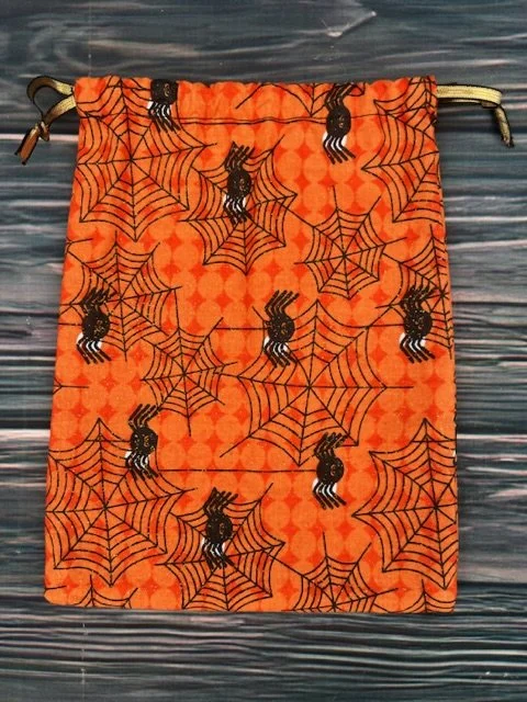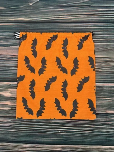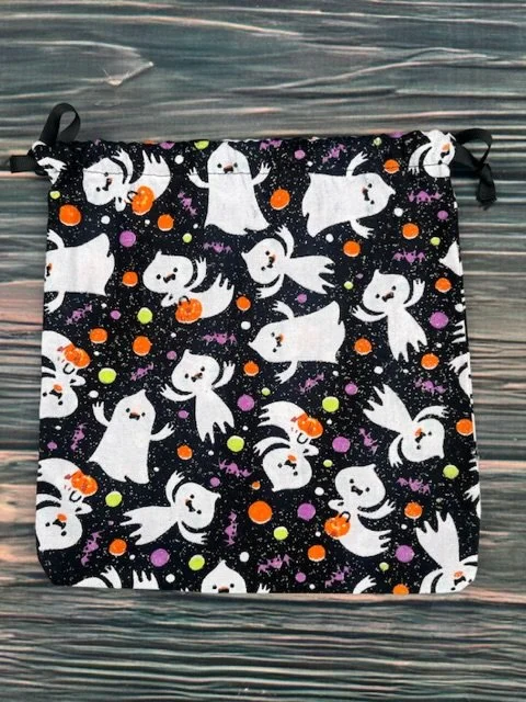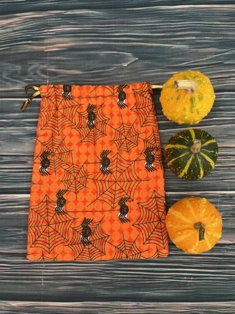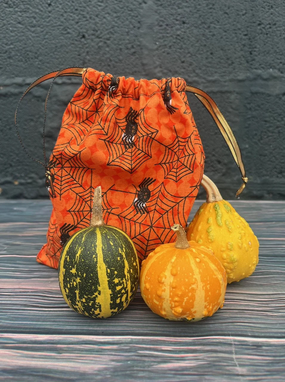 A cute little drawstring cotton bag. Perfect for trick or treating! Comes with a selection of 3 gourds.
